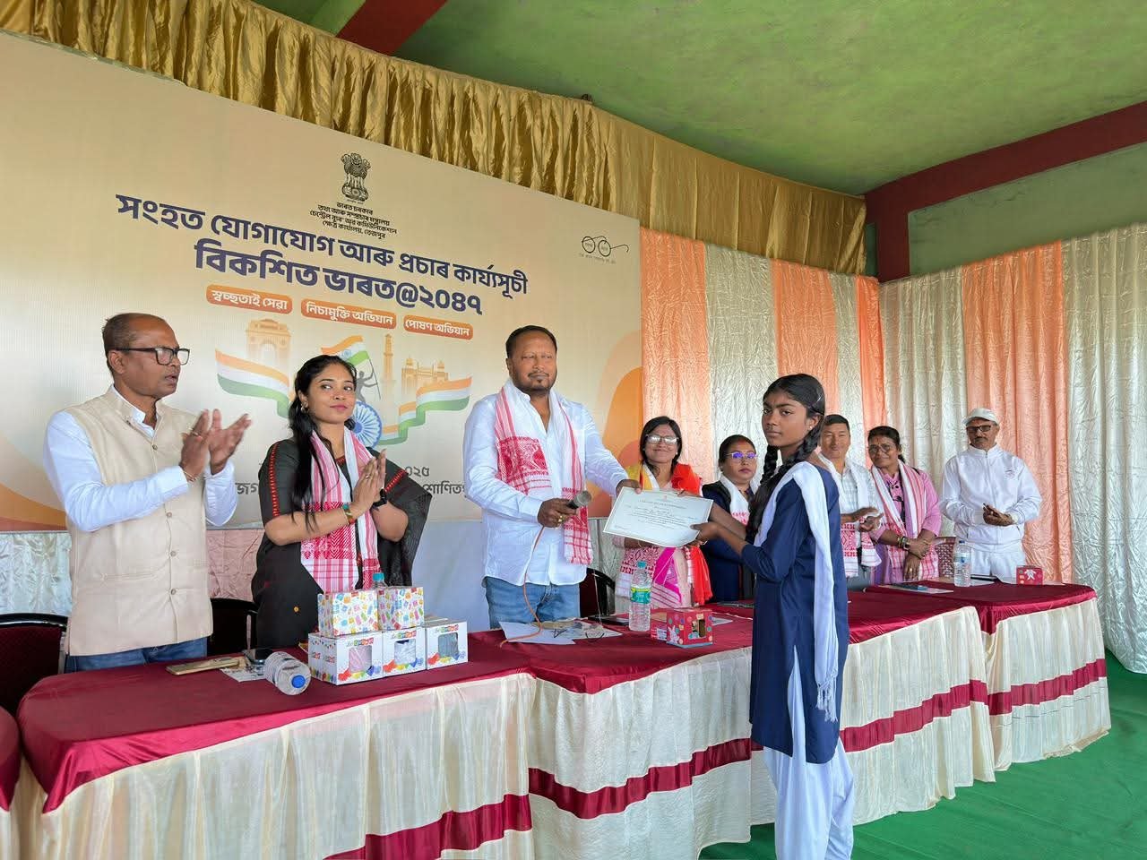 আজি কেন্দ্ৰীয় তথ্য আৰু সম্প্ৰচাৰ মন্ত্ৰালয়ৰ অধীনস্থ কেন্দ্ৰীয় যোগাযোগ ব্যুৰো তেজপুৰৰ উদ্যোগত এক গুৰুত্বপূৰ্ণ সজাগতা সভাত অংশগ্ৰহণ কৰে নদুৱাৰ সমষ্টিৰ বিধায়ক পদ্ম হাজৰিকাই। এই সভাত ‘আত্মনিৰ্ভৰ ভাৰতৰ বাবে শ্ৰমিক সংস্কাৰ’, ‘বিকশিত ভাৰত’, ‘আত্মনিৰ্ভৰ ভাৰত’, ‘পোষণ অভিযান’ আৰু ‘স্বচ্ছতা হী সেৱা’ আদি বিষয়ত ৰাইজৰ সক্ৰিয় অংশগ্ৰহণ বৃদ্ধিৰ উদেশ্যে সচেতনতা সৃষ্টিৰ প্ৰয়াস কৰা হয়। কিয়নো চৰকাৰৰ সঠিক সিদ্ধান্তসমূহৰ সফলতা নিৰ্ভৰ কৰে ৰাইজৰ পৰা লাভ কৰা সহযোগিতাৰ ওপৰত। দিনজোৰা কাৰ্যসূচীসমূহৰ ভিতৰত অন্যতম আছিল: ক) চাফাই অভিযান খ) সজাগতা সভা গ) মহিলাসকলৰ বাবে সংগীত চকী খেল ঘ) মুকলি কুইজ প্ৰতিযোগিতা ঙ) আকৰ্ষণীয় বাটৰ-নাট। সমূহ ৰাইজক তেজপুৰৰ ১ নং ৰাজগড় গ্ৰাম পঞ্চায়ত প্ৰাংগনত অনুষ্ঠিত কাৰ্যসূচী সফল কৰি তোলা বাবে কৃতজ্ঞতা জনাই বিধায়কগৰাকীয়ে।