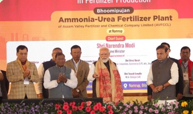 উত্তৰ-পূৰ্বাঞ্চল এতিয়া সাৰ উৎপাদনতো আত্মনিৰ্ভৰশীল হ’ব কাৰণ প্ৰধানমন্ত্ৰী নৰেন্দ্ৰ মোদীয়ে আজি নামৰূপৰ আমোনিয়া-ইউৰিয়া প্লাণ্টৰ ভূমি পূজন কৰে। ১০,৬০০ কোটি টকাতকৈ অধিক ব্যয় সাপেক্ষে ২০৩০ চনৰ ভিতৰত আৰম্ভ হ’বলগীয়া এই প্ৰকল্পটোৱে ৩০০ ৰো অধিক প্ৰত্যক্ষ আৰু ১০০০ৰো অধিক পৰোক্ষ চাকৰিৰ সৃষ্টি হ’ব বুলি আশা কৰা হৈছে।