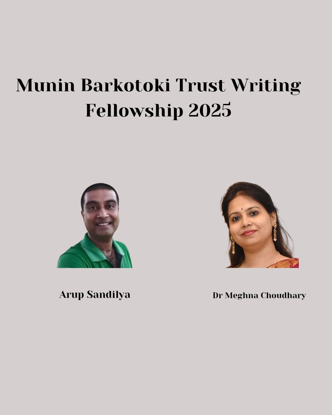 মুনীন বৰকটকী স্মাৰক ন্যাসে ২০২৫ ত প্ৰথমবাৰলৈ আগবঢ়োৱা লিখন ফেল’শ্বিপ অৰূপ শাণ্ডিল্য আৰু ড° মেঘনা চৌধুৰীলৈ।